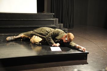 Beckmann, die Hauptfigur in „Draussen vor der Tür“ ist ein Antiheld, der den gesamten Frust einer verlorenen Generation widerspiegelt. Wer ist Schuld am Krieg? Welche Zukunft haben wir noch? Verzweifelt versucht der Heimkehrer mit dem steifen Knie und der grotesken Gasmaskenbrille einen noch verbleibenden Sinn in seinem trostlosen Leben zu finden und im Alltag wieder Fuss zu fassen.